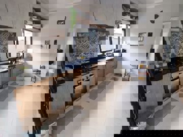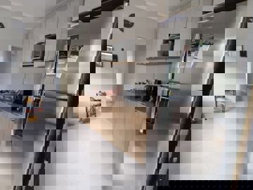 Conceito Aberto: Sala de estar ampla integrada à cozinha, criando um ambiente fluido e iluminado.
