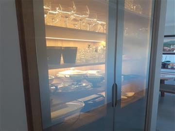 * cozinha planejada e equipada com fogão, geladeira, forno e microondas;